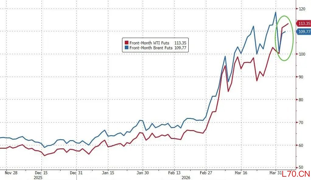 这一溢价水平推动WTI原油期货价格在上周末罕见地超越布伦特原油期货。通常情况下,布伦特原油作为海运原油的定价基准,在全球供应冲击中往往处于领涨地位,而WTI则长期以折价交易。